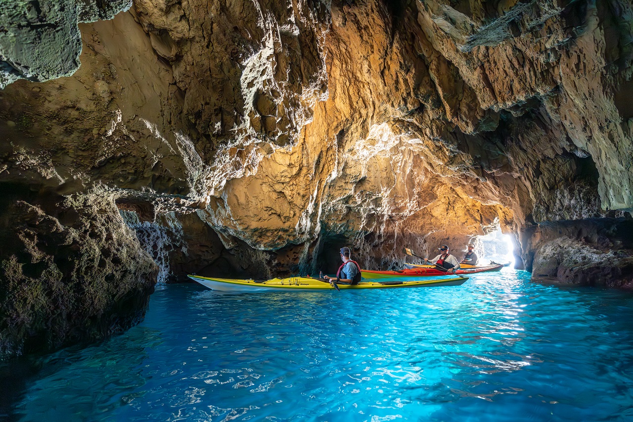 Die schönsten Teile der Insel sind die West- und die Südküste, zwischen Chania im Nordwesten und dem Dorf Matala in der Mitte der Südküste. Der größte Teil dieser Strecke ist abgelegen, viele Küstenabschnitte sind nur auf dem Wasserweg zu erreichen. Einige davon, zum Beispiel die Gramvousa-Inseln im westlichsten Teil, sind völlig unbewohnt. Während dieser Tour kommt man an einigen der bekanntesten Highlights Kretas vorbei, etwa am Valos- und am Elafonissi Beach, zwei Stränden wie aus dem Bilderbuch. Mit glasklarem Wasser und weißem Sand. Doch es sind vor allem die versteckten Juwelen, die diese Küstenabschnitte noch lohnender machen: Strände, die man als Kajakfahrer für sich alleine hat. Dörfer, bei denen man glaubt, sie wären nur für uns an die Steilküste gebaut worden. Erwähnte ich schon das köstliche kretische Essen? Es ist nicht nur das geschmackvollste Griechenlands, ich würde sogar so weit gehen, zu behaupten, dass man in ganz Europa nichts schmackhafteres auf den Teller bekommt.