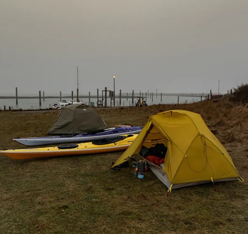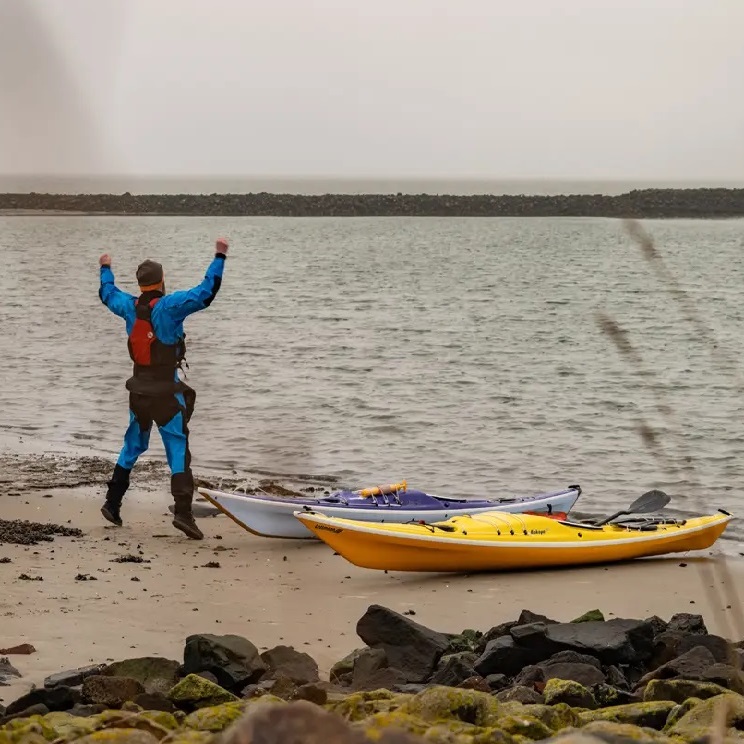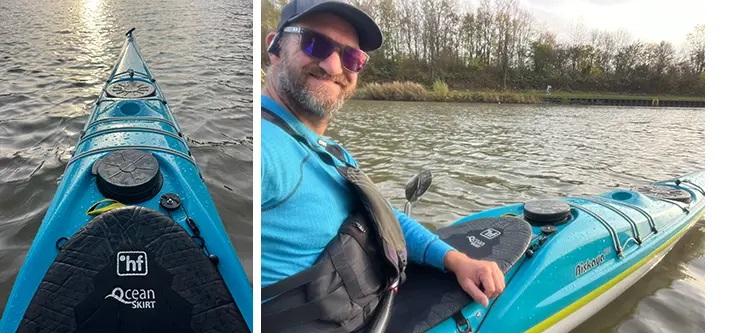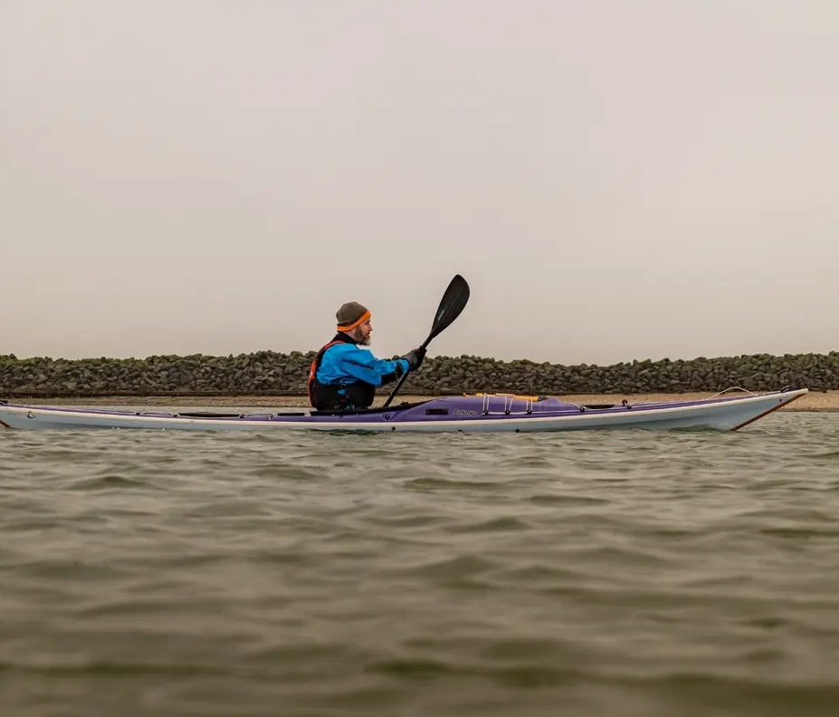 Wir haben den Biskaya 100 in der vergangenen Saison immer wieder dabei gehabt. So haben wir das erste Modell direkt mit auf die Nordsee genommen. Das war im Februar. Hier konnte ich mir auf längeren Touren einen Eindruck vom Fahrverhalten verschaffen. Und was soll ich sagen? Hier überzeugt das ausgeglichene Verhältnis von Geradeauslauf (ein Steuer oder Skeg braucht man nur in homöopathischer Dosis) und Agilität beim Steuern über die Kante. Mit ein paar kleinen Modifikationen, ich klebe mir immer ein bisschen Schaum an die Knie und ziehe das Rückenpolster mit einem Gummi ein bisschen nach unten, damit nur die Lendenwirbelsäule ein wenig unterstützt wird, konnte ich bequem über lange Zeit im Boot sitzen. Der Biskaya 100 ist für mich somit das zweitbeste Seekajak, in dem ich je gepaddelt bin (neben meinem geliebten Akaroa 😉