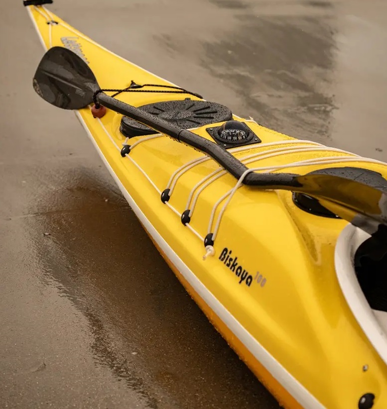 Der Akaroa ist wendiger. Über die Kante gefahren kann man mit dem Akaroa einen engeren Radius fahren. Dasselbe zeigt sich auch beim Einsatz des sehr effektiven Steuers. Während man mit dem Akaroa fast in die Außenkurve kentert, sobald man das Pedal ganz durch tritt, reagiert der Biskaya gelassener, dennoch extrem flott auf den Einsatz des Steuers. Beide Kajaks sind meiner Meinung nach prädestiniert als Skeg-Boote. Man braucht auf dem Meer eigentlich kein Steuer. Ist man im persönlichen Grenzbereich unterwegs, so behaupte ich ja immer, ist ein Steuer trotzdem die sicherere Option. Der Biskaya 100 lässt sich trotzdem ebenfalls gut über die Kante im Kurs korrigieren. Er ist ebenfalls ein wendiges Seekajak für seine Länge von 540cm.